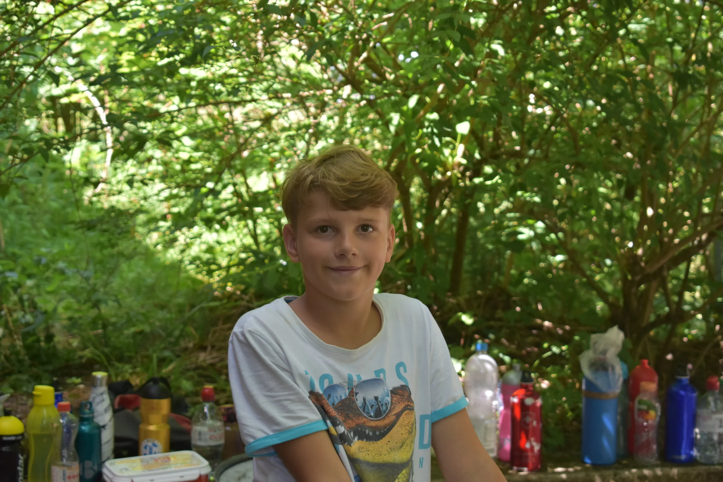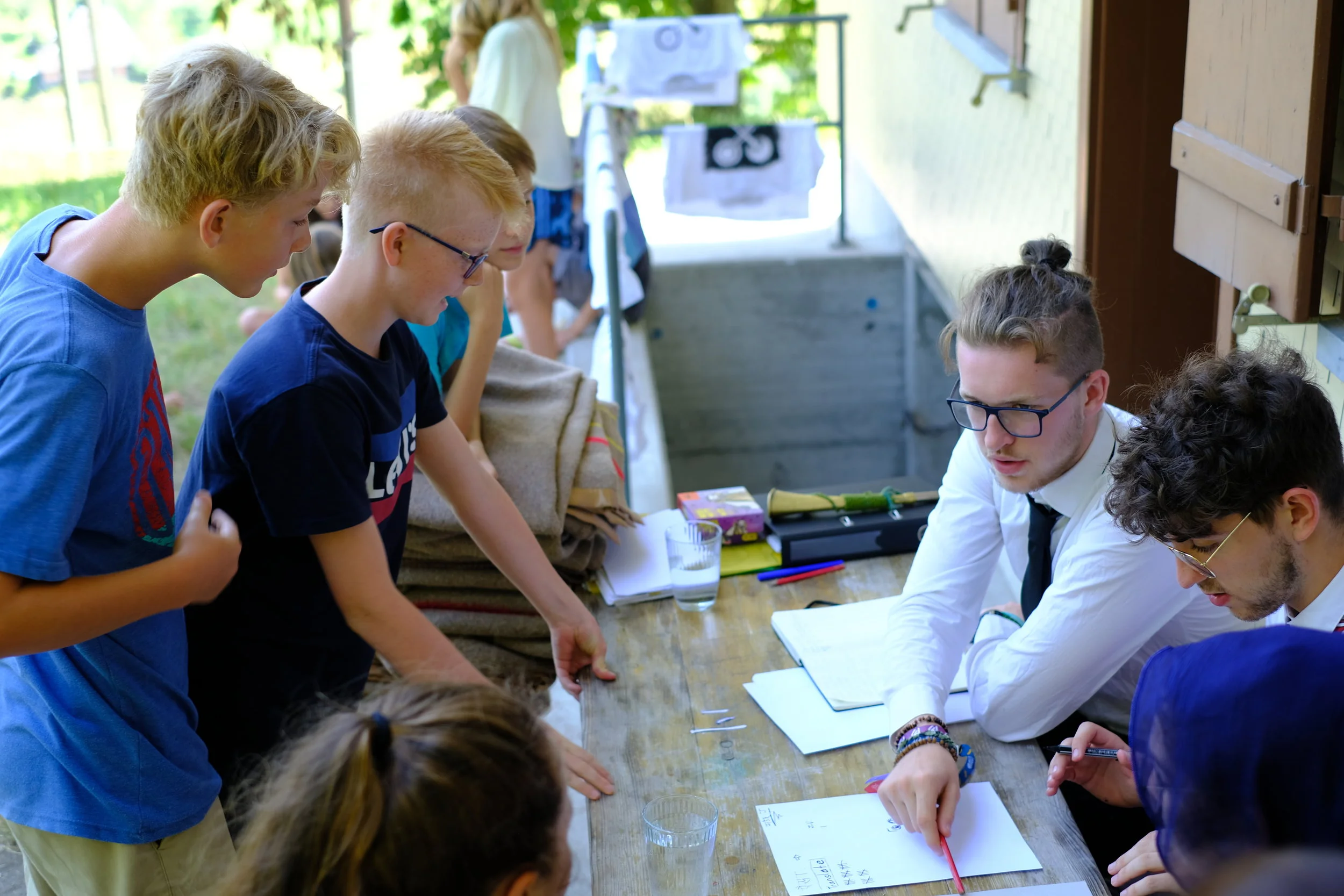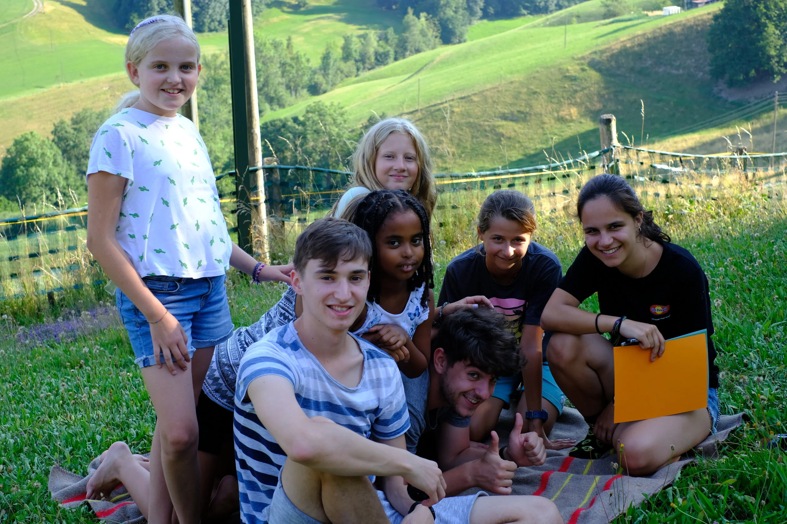 Wir wurden um 8:00 Uhr geweckt. Ca. um 8:15 Uhr gab es Frühstück danach machten wir unsere Ämtli dann hatten wir Freizeit. Wir spielten Fussball, ruhten uns im Zimmer aus und lagen mit Decken auf der Wiese. Bei den Ateliers konnten wir Waldspiele spielen, T-Shirts bemalen oder Bänder knüpfen. Zum Mittagessen gab es Curryreis. Nach dem Mittagessen trafen wir eine Inderin die uns einen Schatzdetektor anbot. Um diesen zu bekommen mussten in den Ämtligruppen Nägel bauen und die auf dem Schwarzmarkt versteigern. Dann hatten wir wieder Freizeit. Zum Abendessen gab es Ofengemüse und übriggebliebener Curryreis. Danach spielten wir noch ein bisschen auf der Wiese oder auf dem Fussballplatz. Nachher werden wir in den Wald singen gehen. Um ca. 10:30 werden wir im Bett sein (hoffentlich).