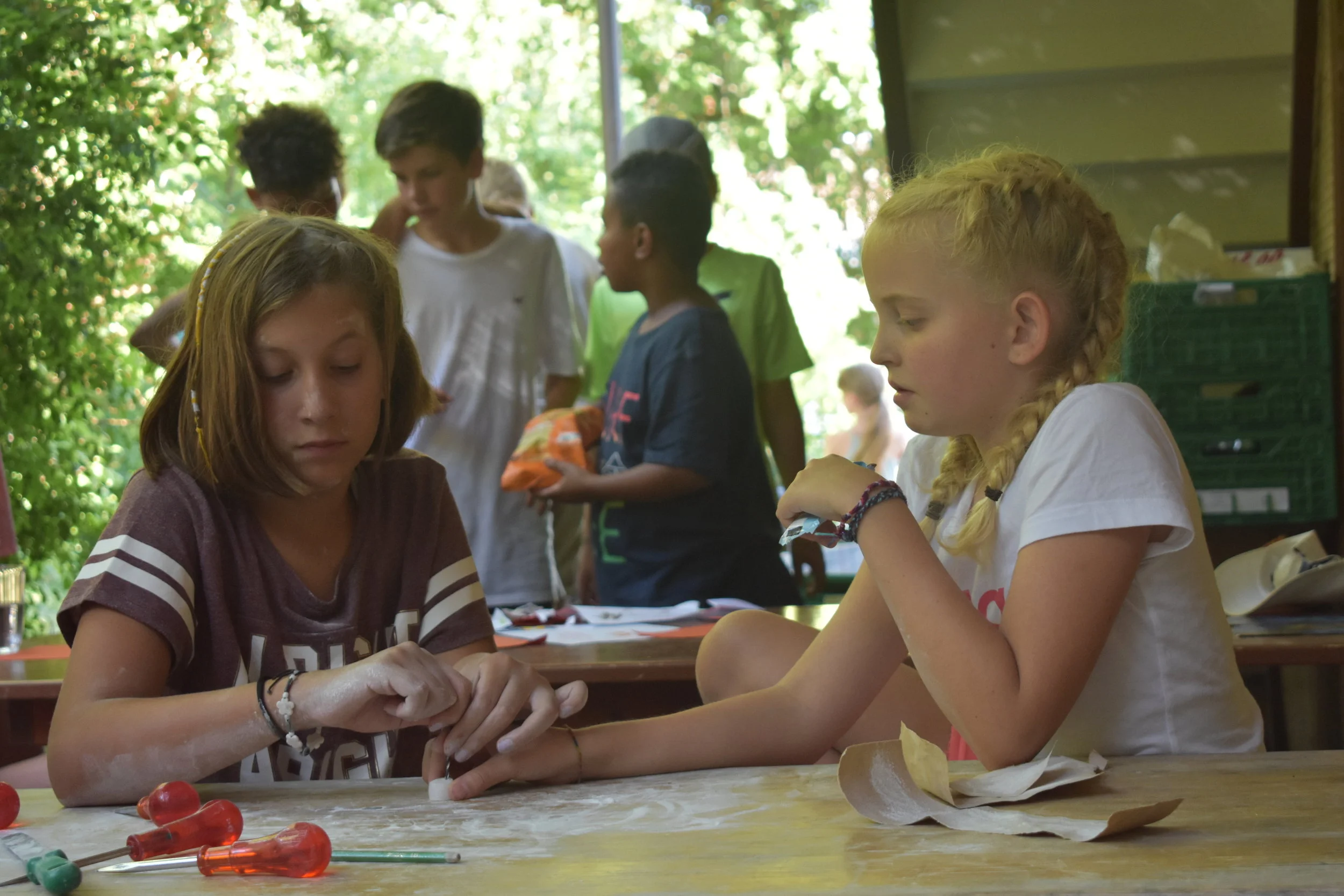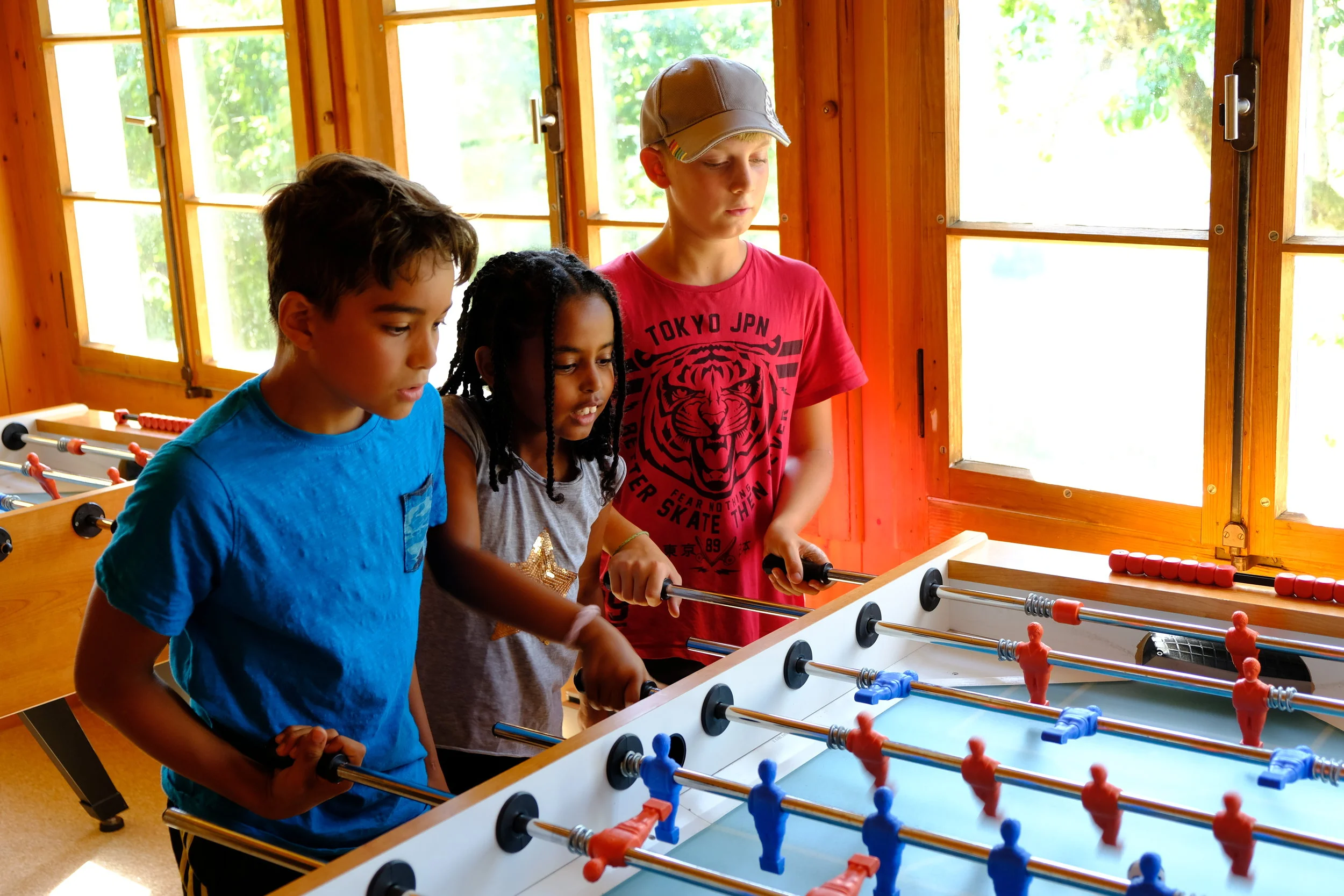 Später am Nachmittag gab es Ateliers, man konnte wählen zwischen Fussball, Papierflieger basteln oder Speckstein schleifen. Einige Kinder schmierten sich mit Specksteinstaub ein was sehr lustig war.