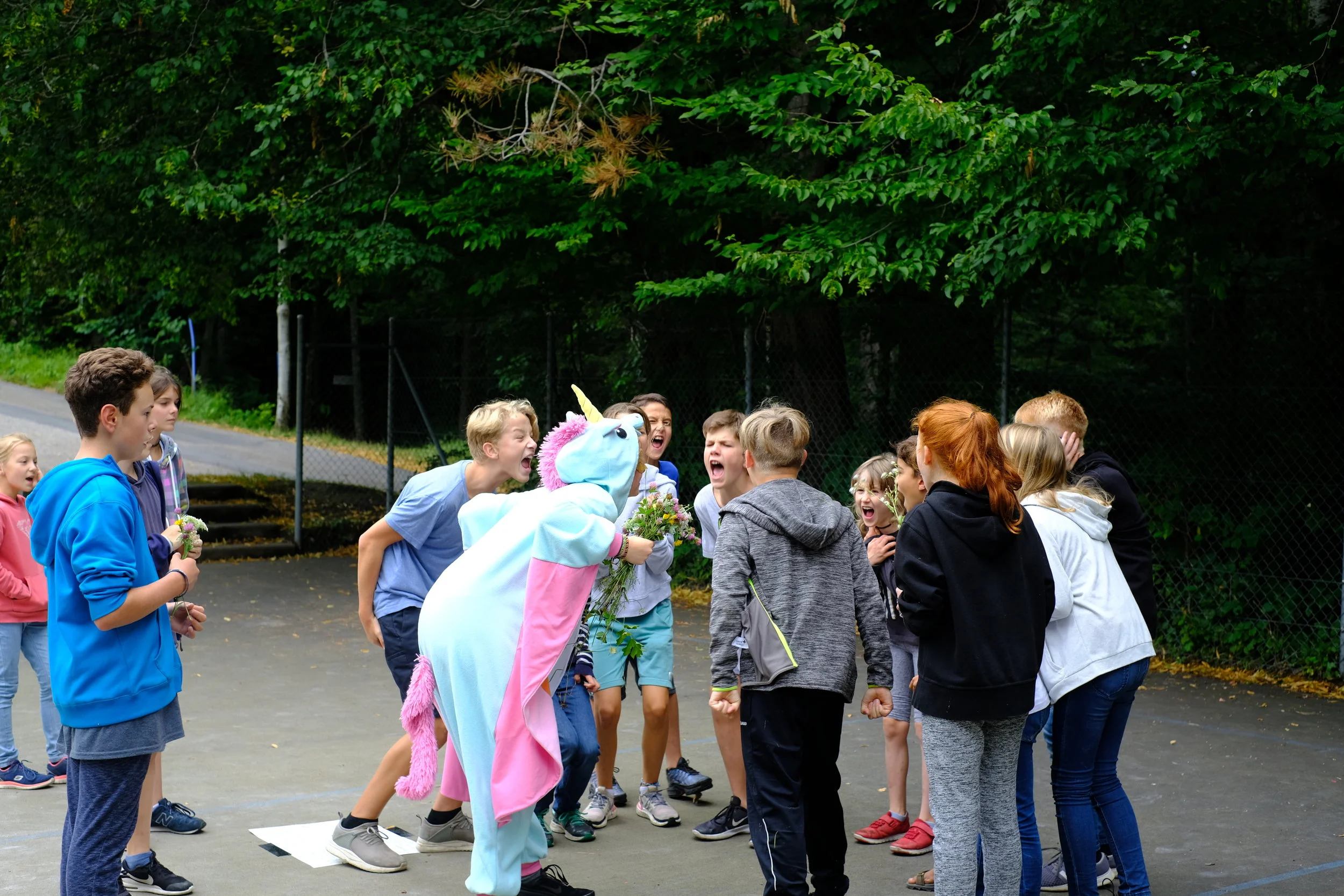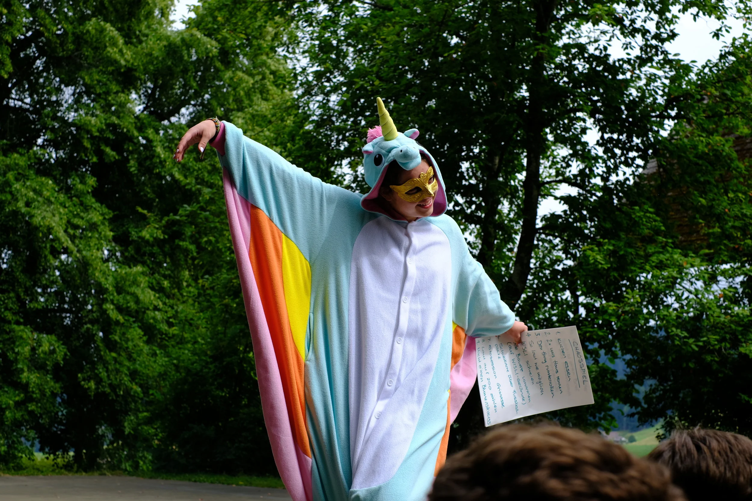 Wir wurden wie jeden Tag um 8:00 Uhr geweckt. Gruppe Türkis musste Tischdecken danach assen wir Frühstück. Nach der Freizeit gab es Ateliers, Bändelis, Brettspiele und Specksteine schleifen. Danach assen wir Mittag. Nach der Mittagsruhe hat ein Clone von Diego unsere Klämmerli geklaut, wir haben ihn dann aber Gefangen und in den Keller gesperrt. Danach trafen wir ein Einhorn das uns helfen wollte unsere Bio-Sphäre zu reparieren aber als Gegenleistung für die Hilfe mussten wir aber für das Einhorn verschiedene Sachen machen. Vor dem Abendessen hatten wir wieder Freizeit.